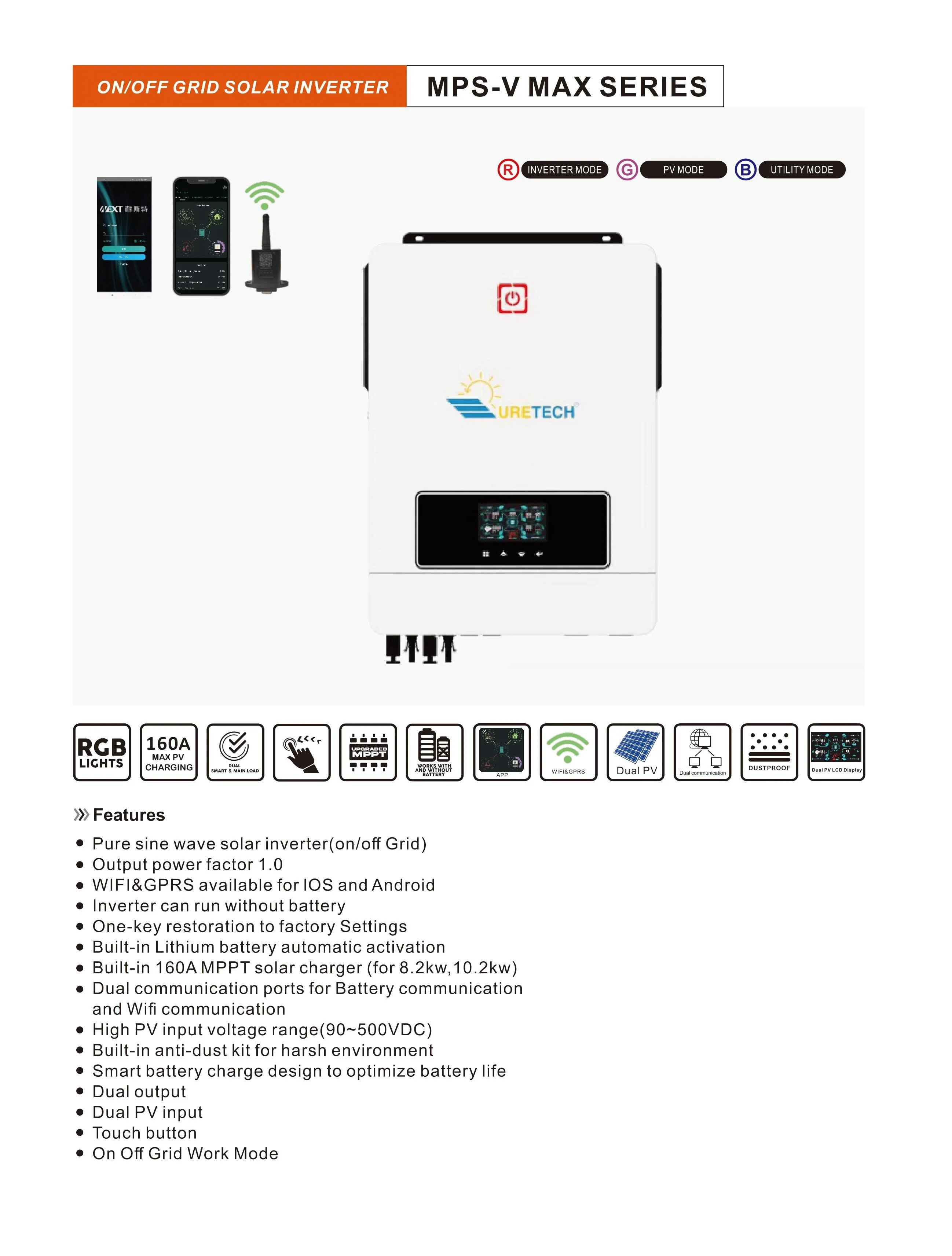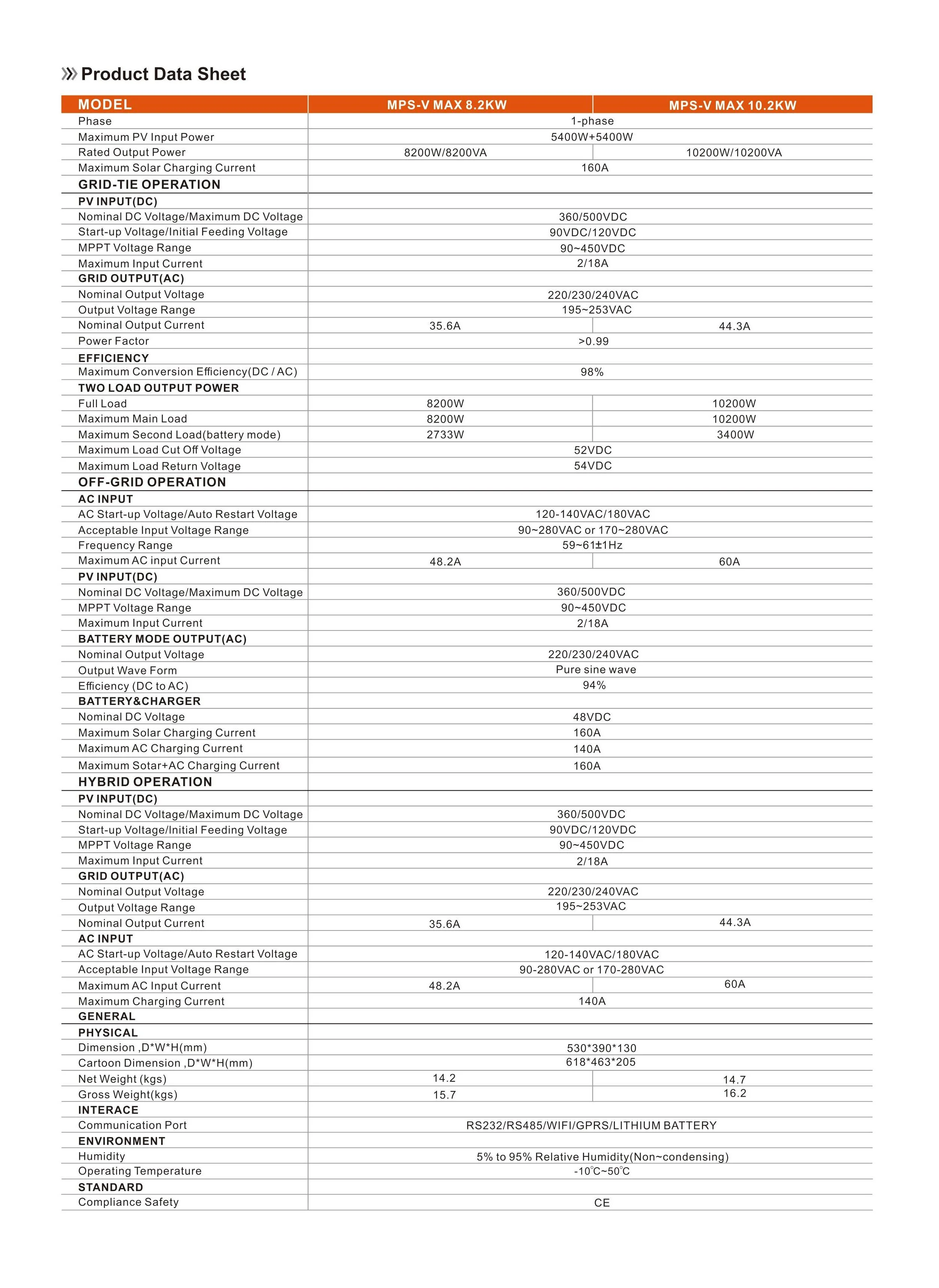 - Dahili 160 Amper Dual MPPT şarj kontrol cihazı (Maksimum Solar Voltage:450 PVmax: 10200Watt)