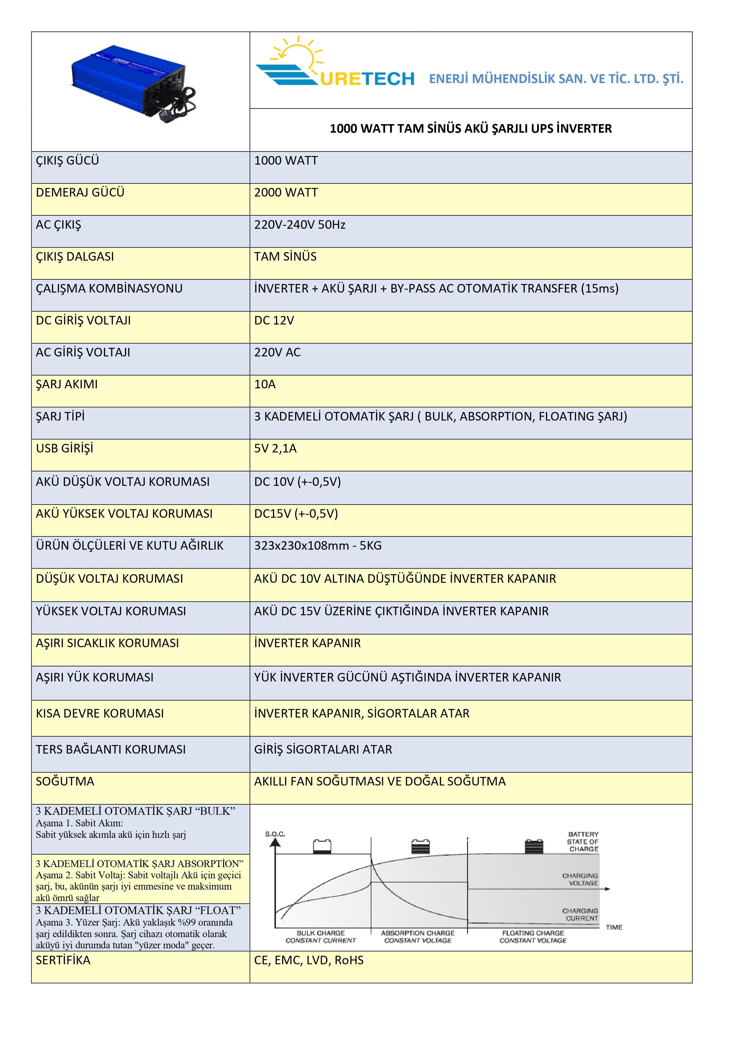 1000 Watt Tam Sinüs Akü Şarjlı Ups İnverter 12Vdc-230Vac
